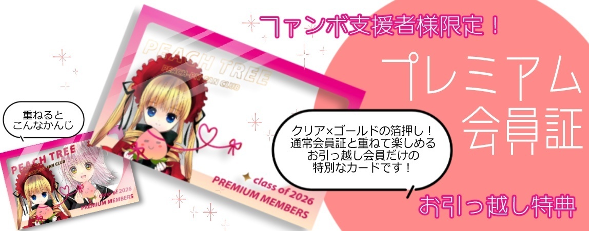通常会員証と重ねて楽しめる、プレミアム会員証です。桃農家パッションを重ねてアピール!